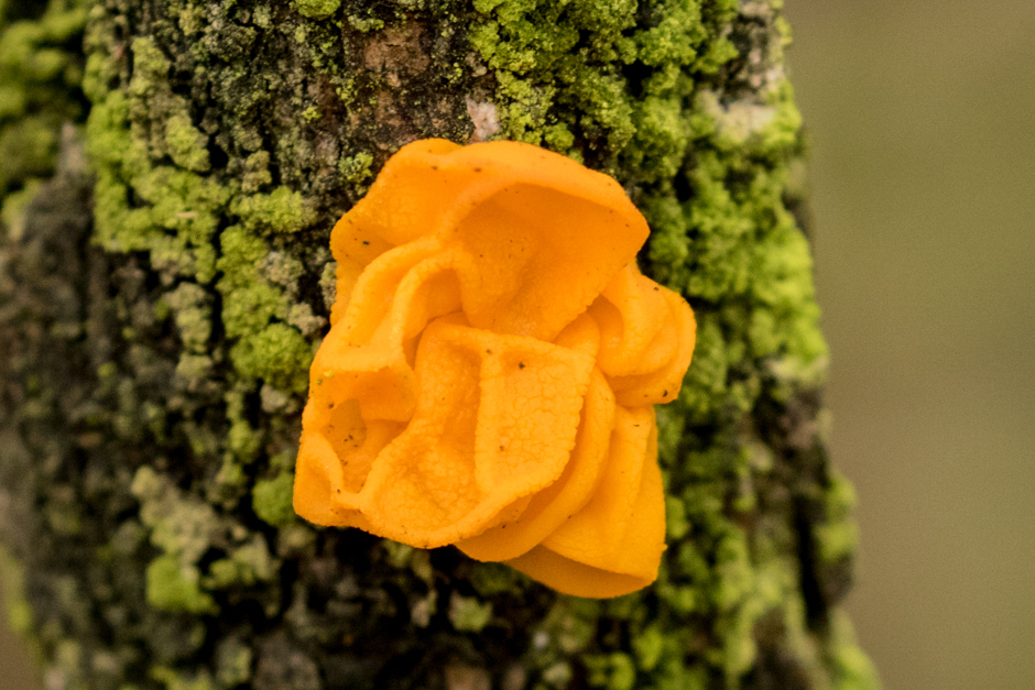 Fungi :- Yellow Brain Fungus Tremella mesenterica on gorse.